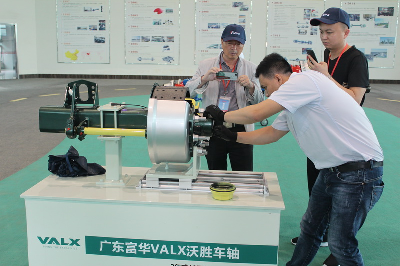 在富華產(chǎn)品展示廳,富華的銷售團(tuán)隊(duì)向來賓們?cè)敿?xì)介紹了沃勝VALX車軸以及空氣懸掛等產(chǎn)品,并在現(xiàn)場(chǎng)對(duì)沃勝VALX車軸的輪轂系統(tǒng)進(jìn)行拆裝演示。