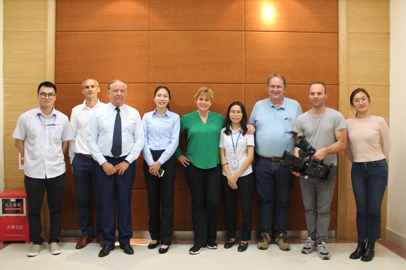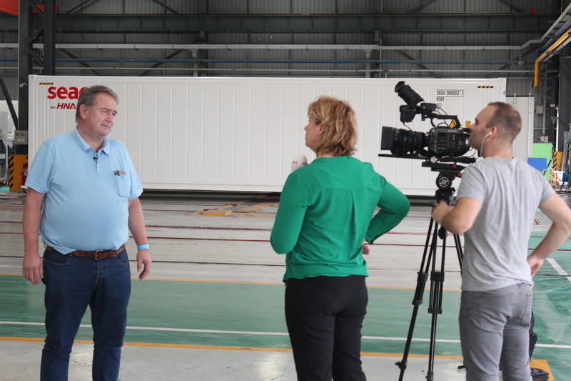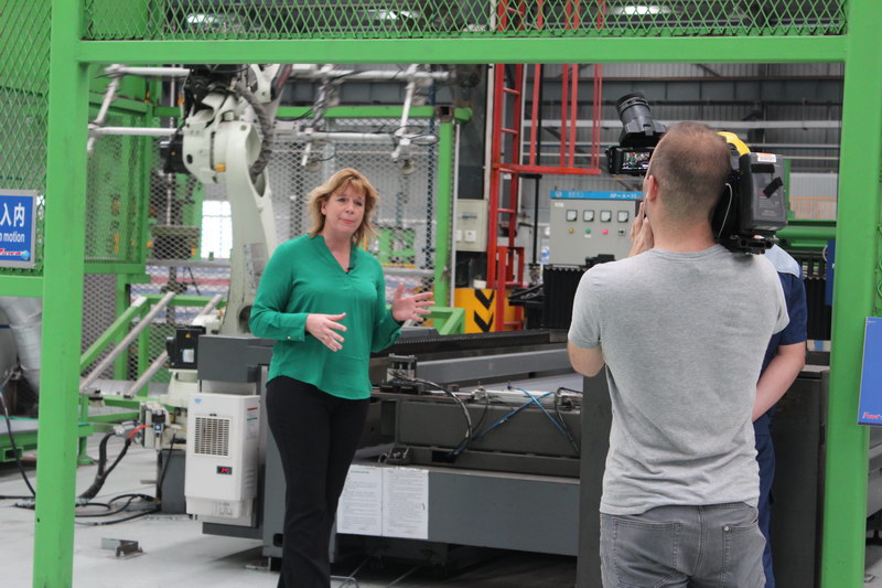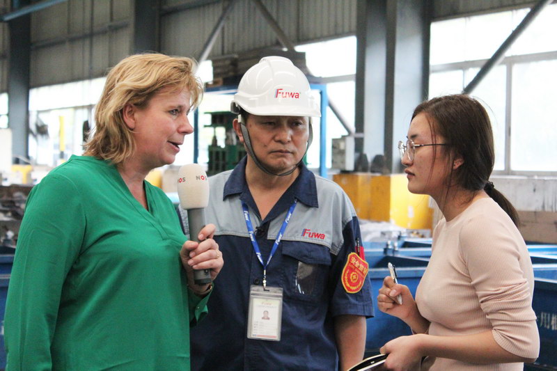 NOS駐東亞記者費(fèi)瑪麗女士一行三人,先后到訪了位于佛山順德的富華集裝箱制造基地以及臺(tái)山的富華重工制造基地。