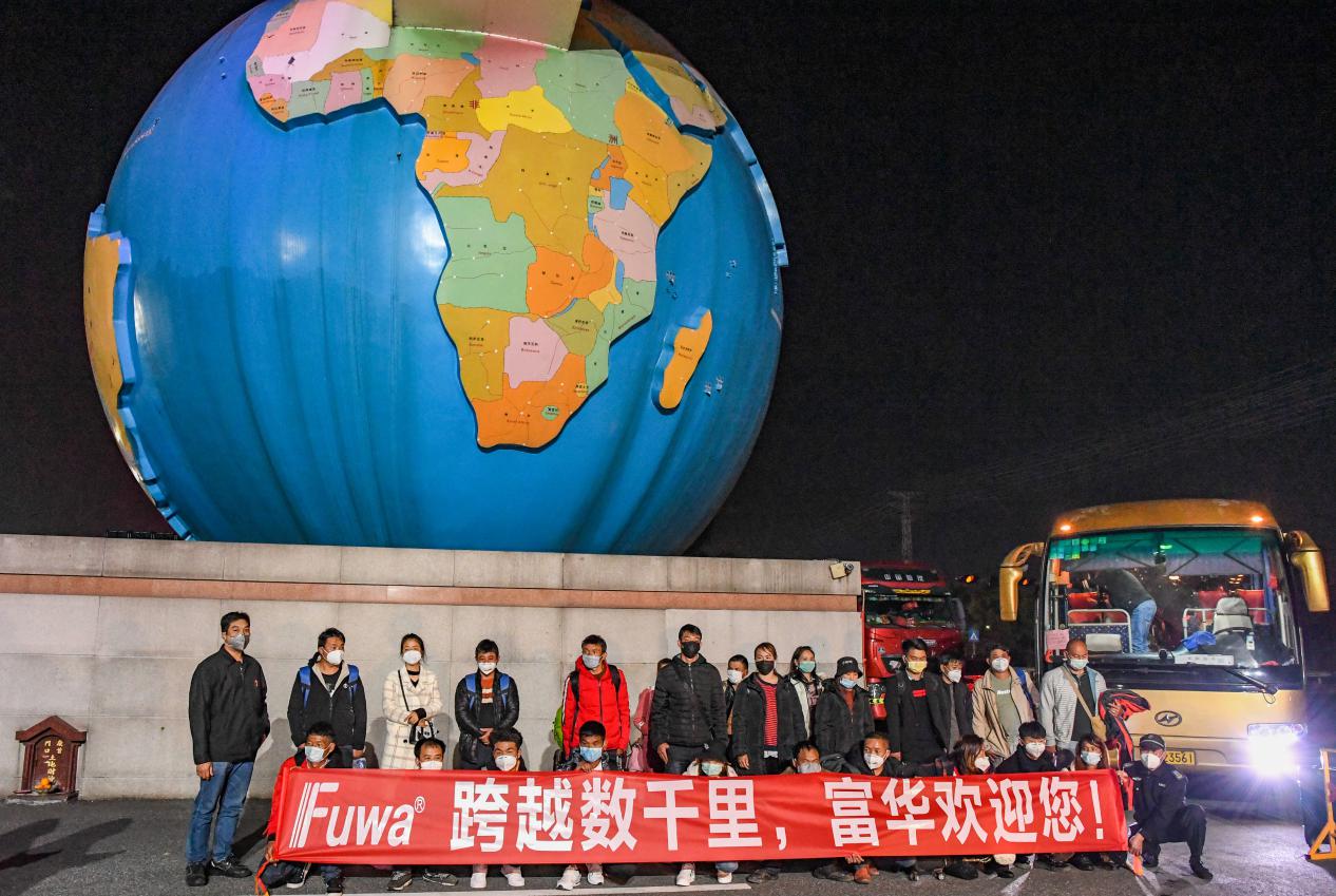 2月25日凌晨兩點(diǎn)時分,一輛載著25名富華員工的大巴車安全抵達(dá)廣東富華機(jī)械裝備制造有限公司。員工們背滿行李,身顯疲憊地走下車,雖然已是深夜但大家依舊面帶笑容?!案兄x公司不遠(yuǎn)千里接我們回來,真的非常感謝!”一位戴著帽子皮膚黝黑的員工激動地說到。