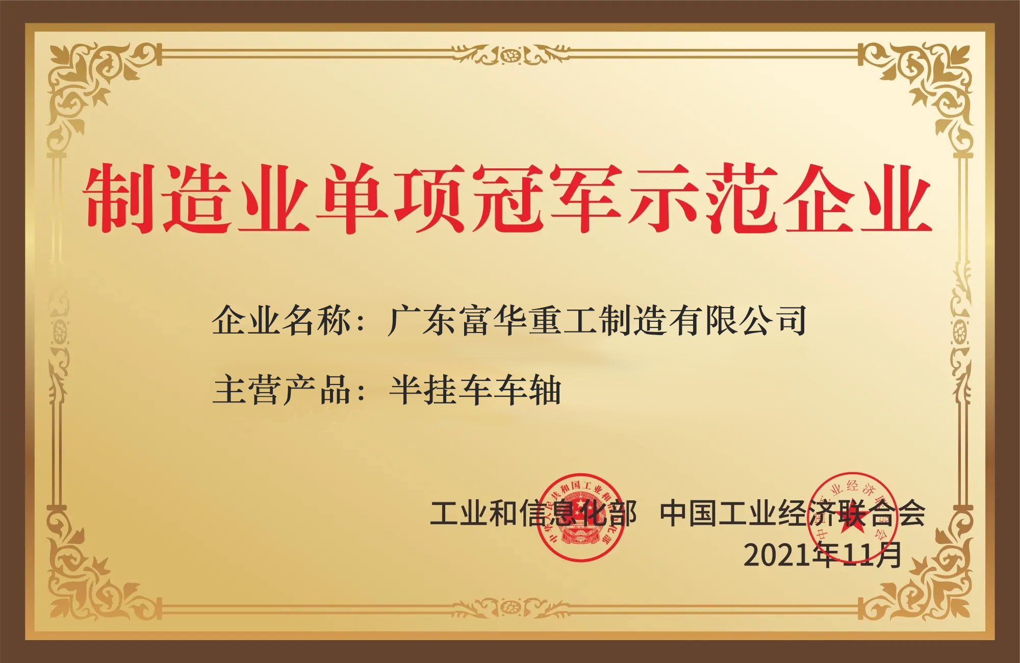 近日,國家工信部發(fā)布了最新一批制造業(yè)單項冠軍企業(yè)名單,廣東富華重工制造有限公司“掛車車軸”榮耀在列。成為制造業(yè)單項冠軍示范企業(yè),彰顯了富華重工高端商用車行走機構(gòu)制造的硬核實力。